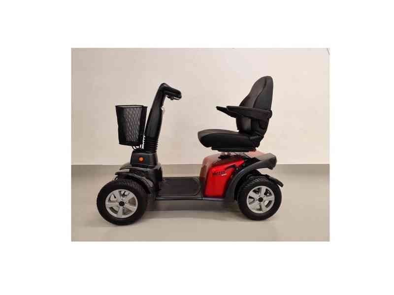 Dobré baterie 2x12V 73Ah, motor 750 W, elektromagnetická brzda, délka 138 cm, šířka 64 cm, rychlost 15 km/h, nosnost 160 kg. Součástí je nabíječka, držák holí, opěrka hlavy a košík. Záruka 12 měsíců, pozáruční servis, možnost doručení